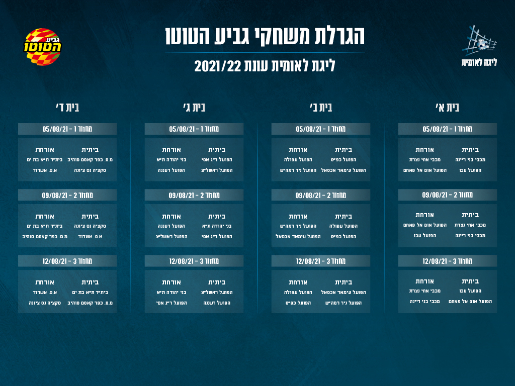 הגרלת לוחות המשחקים בליגת העל לאומית וגביע הטוטו מנהלת הליגות לכדורגל
